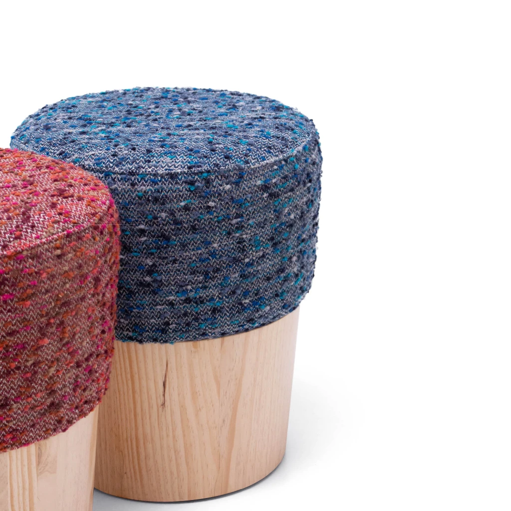 Pouff fabriqué en bois et pine massif et panneaux MDF.